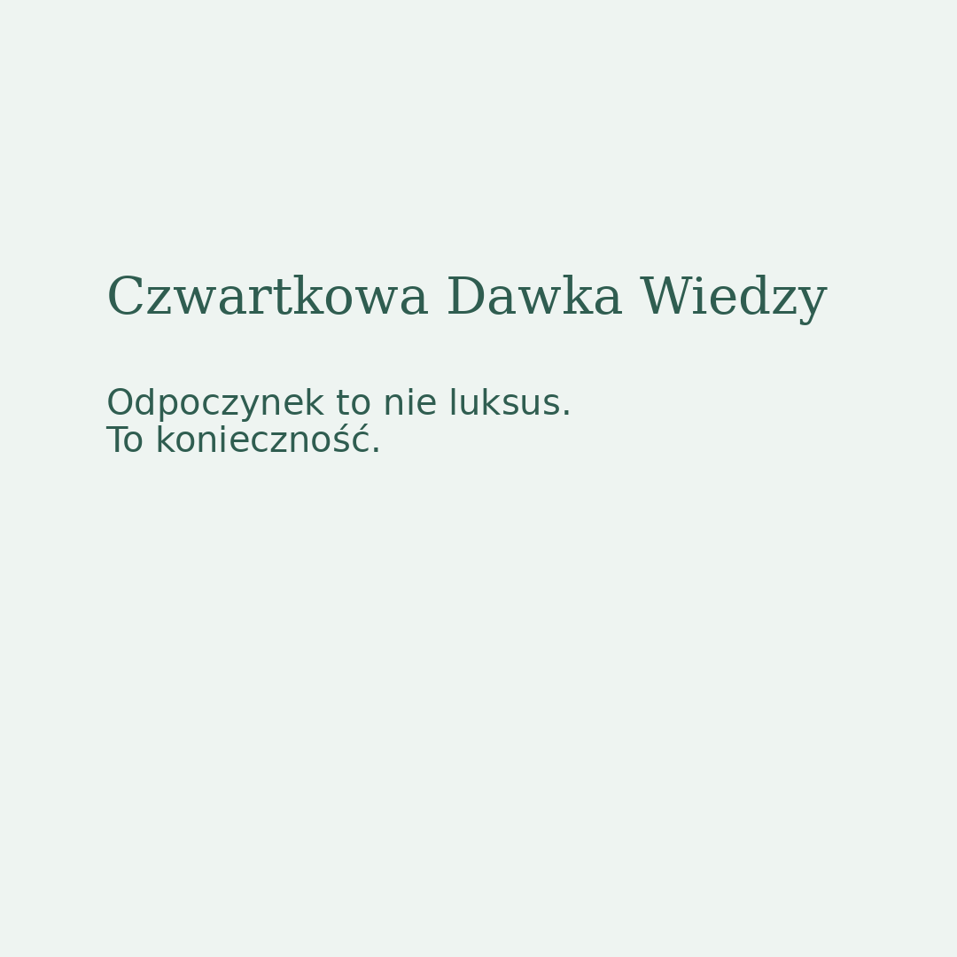 W kulturze produktywności odpoczynek często bywa traktowany jak nagroda. Coś, na co trzeba zasłużyć. Tymczasem z perspektywy psychologii i neurobiologii regeneracja jest niezbędnym elementem funkcjonowania.